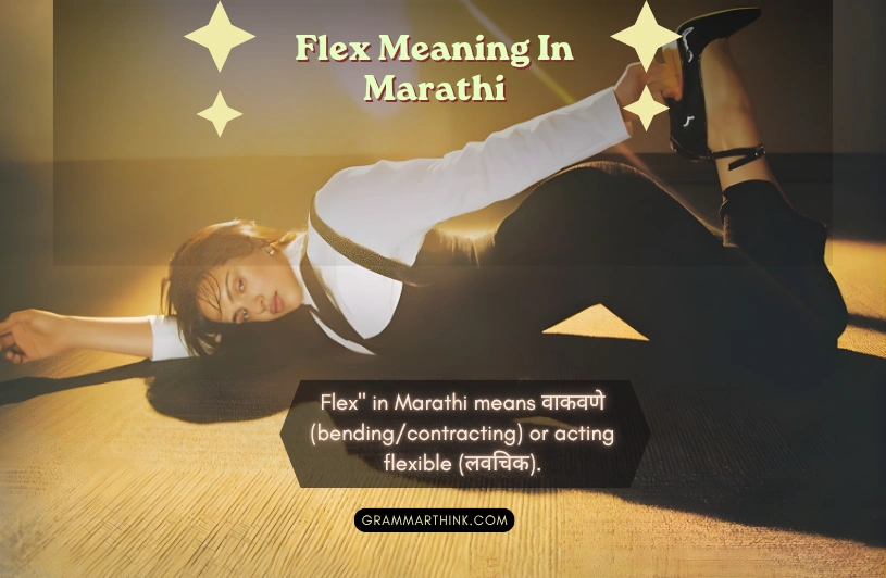 Flex Meaning In Marathi is “वाकणे / लवचिकपणा दाखवणे” (to bend / to show flexibility) in the physical sense, and “दिखावा करणे / बढाई मारणे” (to show off / to boast) in modern slang. The word works as both a verb and a noun depending on the context.
