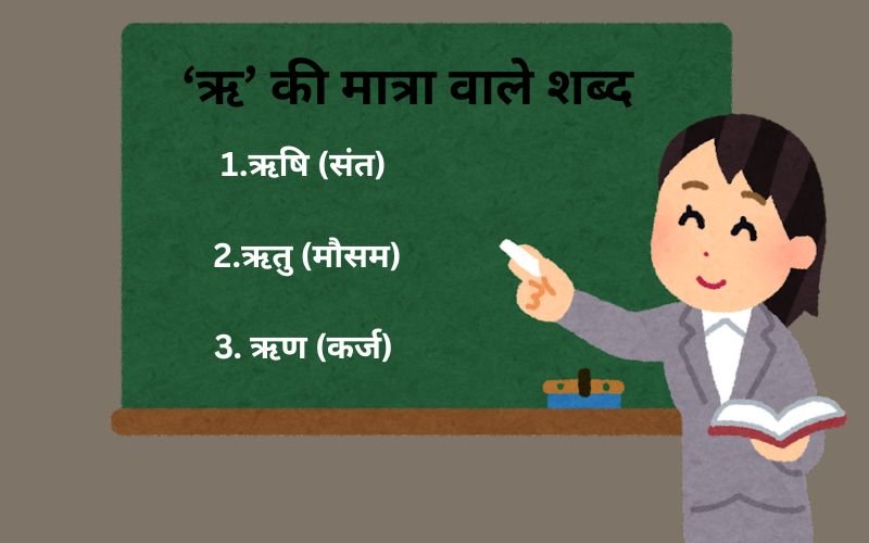 ऋ की मात्रा वाले शब्द (Ri Ki Matra Wale Shabd): ऋ की मात्रा (ृ) हिंदी का 7वाँ Vowel है जो व्यंजन के नीचे लगती है। यह ज़्यादातर Sanskrit-derived शब्दों में आती है और Class 1–2 में पढ़ाई जाती है।