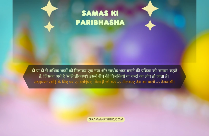 ध्यान रखें: समास में विभक्तियाँ (का, के, की, को, से, में) छुप जाती हैं। यही Samas Ki Paribhasha की सबसे बड़ी पहचान है।